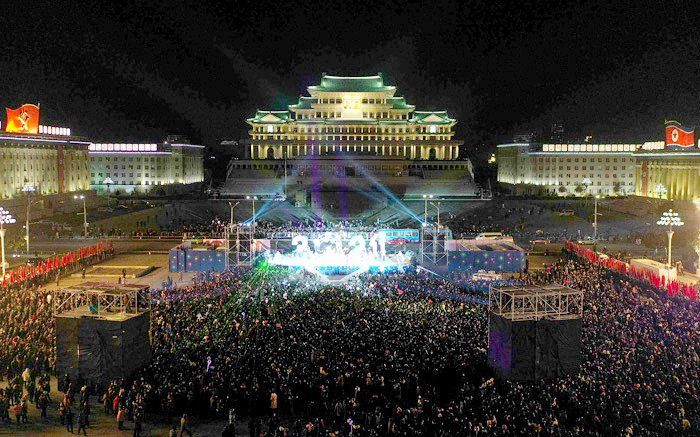 Auf dem Kim-Il-Sung-Platz in Pjöngjang erleben Sie die Neujahrsfeierlichkeiten mit Feuerwerk, Gesang und Tanz.