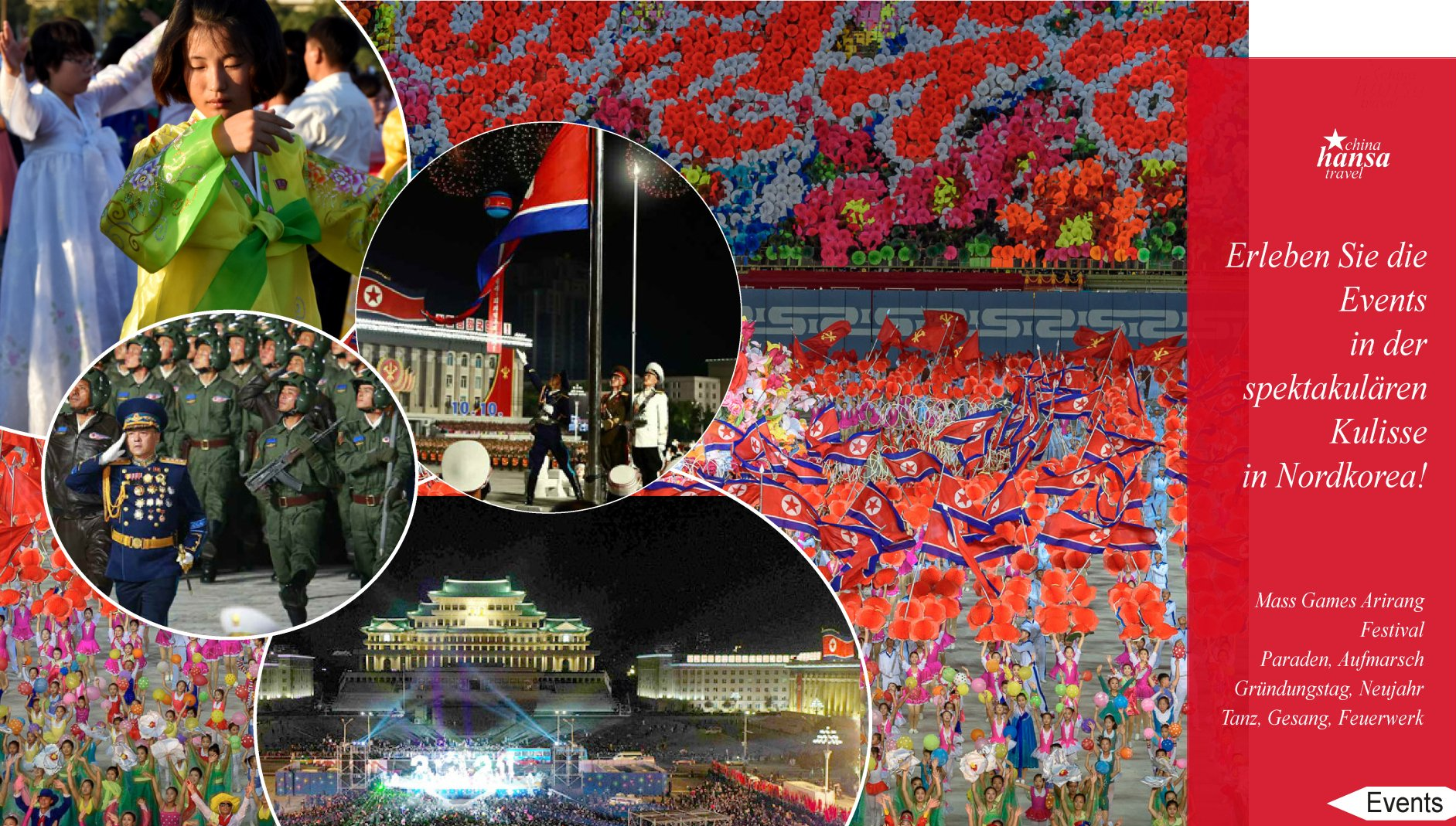Persönliche Beratung, Beschaffung des erforderlichen Nordkorea-Visums, Flug ab Deutschland, deutschsprachige Reiseleitung auf den vielfältigen Nordkorea-Rundreisen, individuellen Nordkorea-Privatreisen und den zahlreichen Nordkorea-Gruppenreisen sind die überzeugenden Leistungen Ihres Reiseveranstalters China Hansa Travel.
